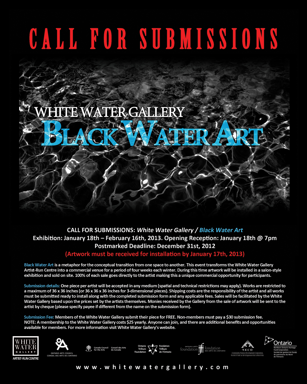 The White Water Gallery is still accepting work for their annual Black Water Art exhibition. Gallery hours are open from 11am – 4:30pm Tuesday- Friday each day for dropping off your work.